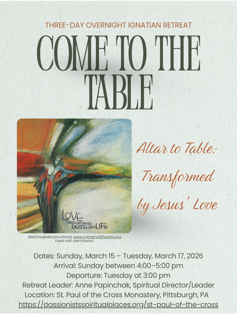 To Register: Call St. Paul of the Cross Spiritual Center at 412-381-7676.